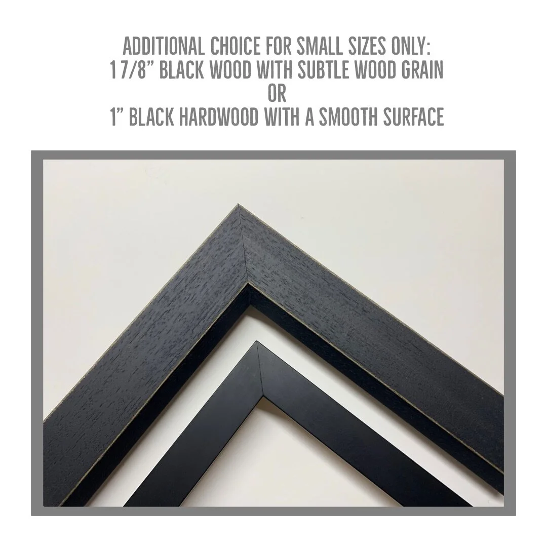 Option 3: Black hardwood thin 1” frame with smooth finish